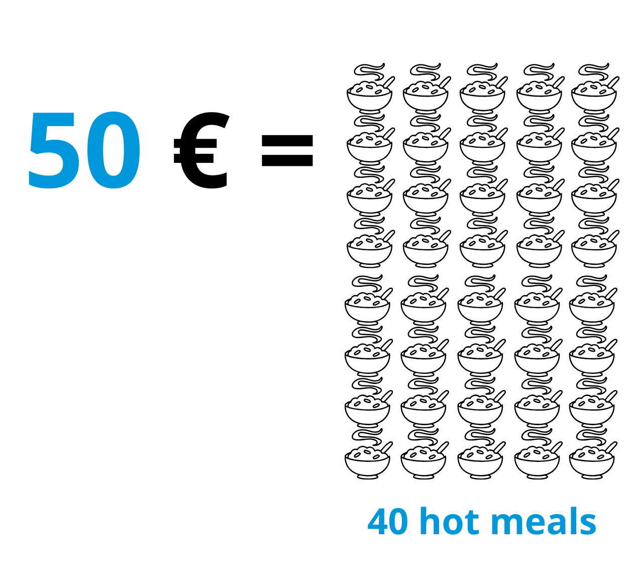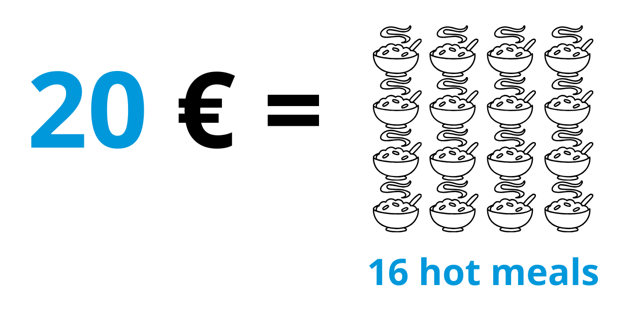 Uw bijdrage vandaag betekent dat we mogelijk 40.000 maaltijden kunnen bezorgen aan mensen die anders zonder zouden zitten.