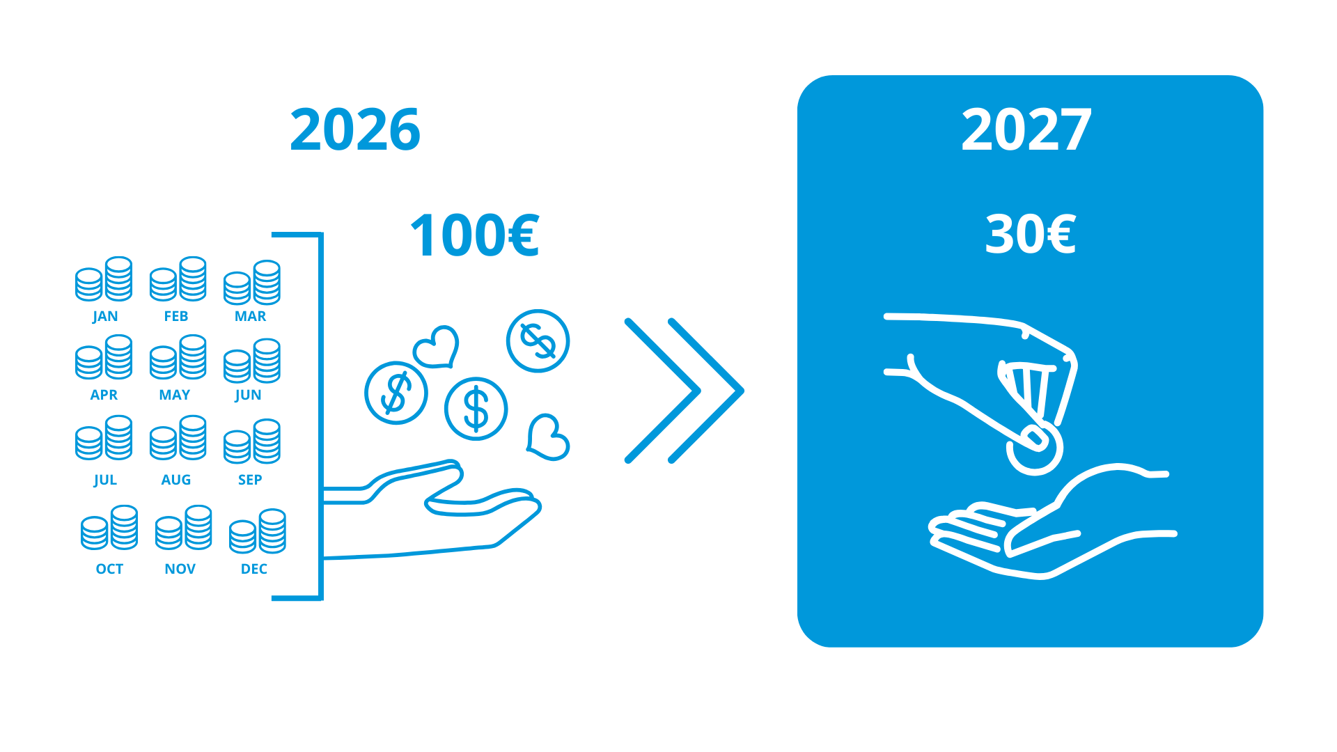Met andere woorden, als u in een jaar € 100 doneert, krijgt u € 30 terug in belastingen. Dat betekent dat het u in werkelijkheid slechts € 70 kost!